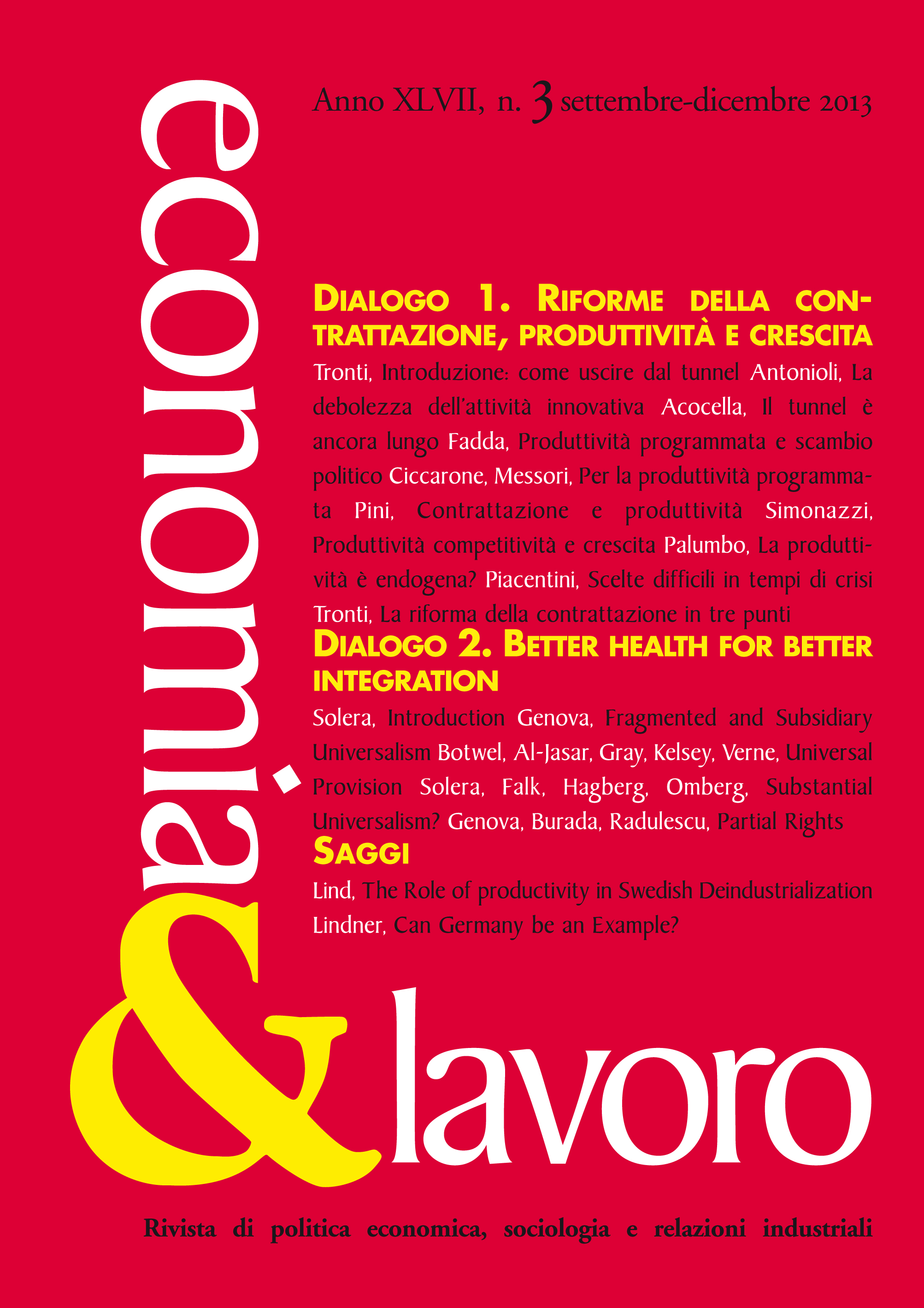 Comitato editoriale (responsabile degli indirizzi scientifici della rivista, senza funzioni decisionali in merito alla selezione e pubblicazione degli articoli): Dominique Anxo, Paolo Bagnoli, Josep Banyuls Llopis, Paolo Borioni, Gerhard Bosch, Luisa Corazza, Orsola Costantini, Michele Faioli, Beáta Farkas, Umberto Gentiloni, Dario Guarascio, Eri Kasagi, Victoria Lambropoulos, Rochelle Le Roux, Riccardo Leoni, Franco Liso, Fabrizio Loreto, Claudio Lucifora, Maria Cristina Marcuzzo, Andrea Panaccione, Paolo Piacentini, Paolo Pini, Enrico Pugliese, Michele Raitano, Brishen Rogers, Enzo Russo, Francesco Saraceno, Donatella Strangio, Paola Villa, Andrew Watt